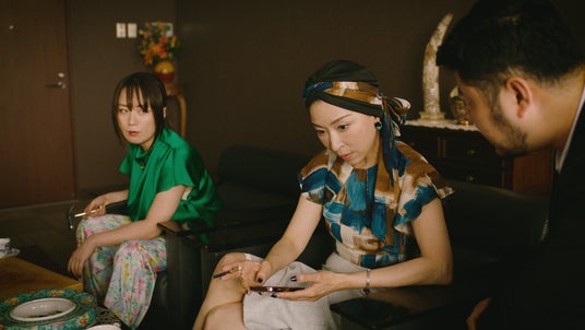 畳部屋で談笑する岡田さん、森川さん、後藤さん