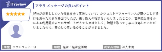 ※アララ メッセージご利用のお客様からのレビューはアイティクラウド社のWebページでご覧いただけます。