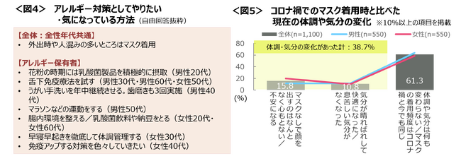 アレルギー対策として今後やりたい・気になっている方法は、外出時や人混みでの「マスク着用」がメイン。