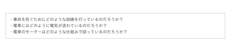 運転士・車掌の2つの仕事について、運転シミュレーターを使って体験するとともに、電車が動く仕組みを知ることで、小学校3~5年生の理科を身近に感じながら学べます!