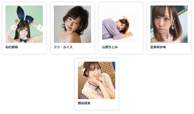 ねむ部長 / ツジ・ルイス / 山野さとみ / 星奈美紗希 / 西原綾美
