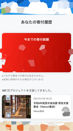 ・寄付先; ヤフーのネット募金における令和6年能登半島地震緊急支援募金(https://donation.yahoo.co.jp/promo/20240101.html?cpt_n=noto2024_20240101&cpt_s=yj_don&cpt_m=carousel&cpt_c=noto2024_20240101_yj_don_carousel)