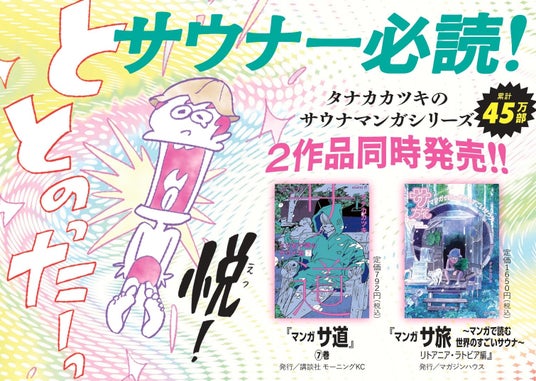「ととのったー!」でおなじみのサウナ伝導マンガ『マンガ サ道』(講談社刊)は、約2年8ヵ月ぶりとなる新刊・第7巻が同日発売となり、タナカカツキ作品の2タイトルが、出版社をまたいで同時刊行されるかたちとなります。
