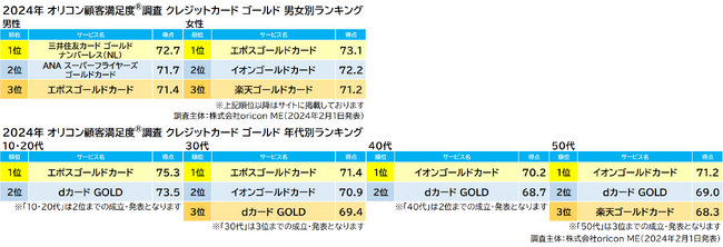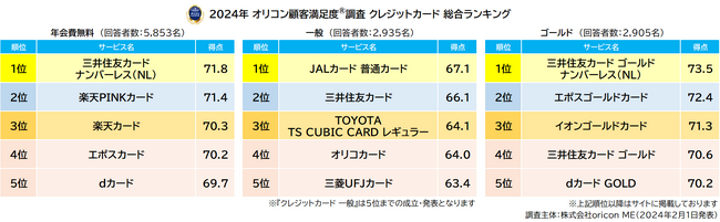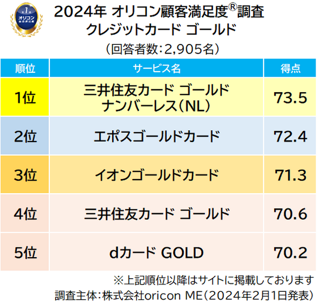 2024年 オリコン顧客満足度(R)調査 クレジットカード ゴールド
