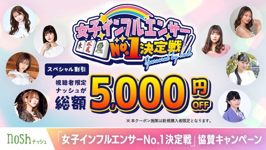 冷凍宅配食サービス「nosh(ナッシュ)」を提供するナッシュ株式会社は、麻雀大会『女子インフルエンサー麻雀No.1決定戦』への協賛を記念してお得なキャンペーンを開催することをお知らせします。