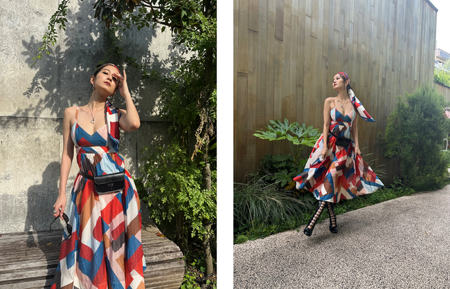 シーズントレンドでワードローブにマストで買い足したいカットアウトデザインのドレス。ジオメトリック柄で一枚で着映えし、軽量で柔らかなコットンシルク素材で肌触りよくエアリー感を演出してくれます。