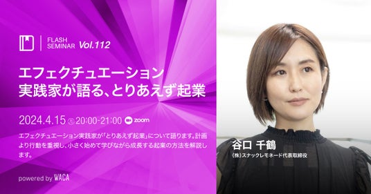 2024/4/15(月)20:00 - 21:00 【Flashセミナー】Vol.112 エフェクチュエーション実践家が語る、とりあえず起業