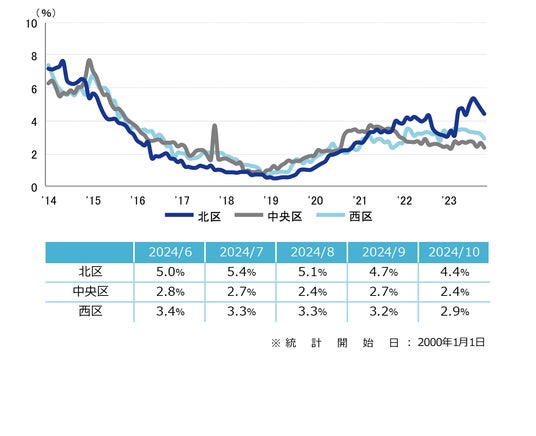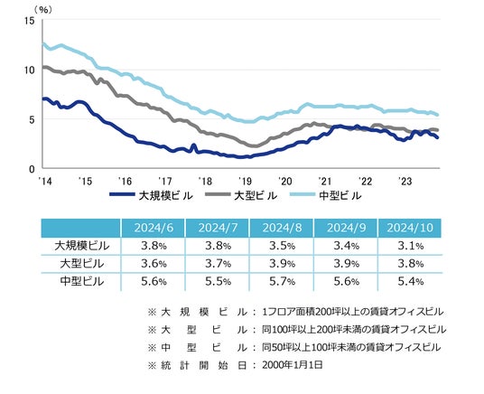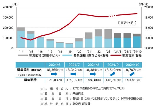 三幸エステート株式会社(本社:東京都中央区、取締役社長:武井重夫)は、2024年10月度の大阪市オフィス賃貸状況(空室率&現空面積:大規模、募集賃料&募集面積:大規模、規模別空室率、主要3区※1空室率:大規模)および全国6大都市(東京・札幌・仙台・名古屋・大阪・福岡)の大規模ビルのマーケットデータをまとめた「オフィスマーケット2024年11月号大阪」を公表します。