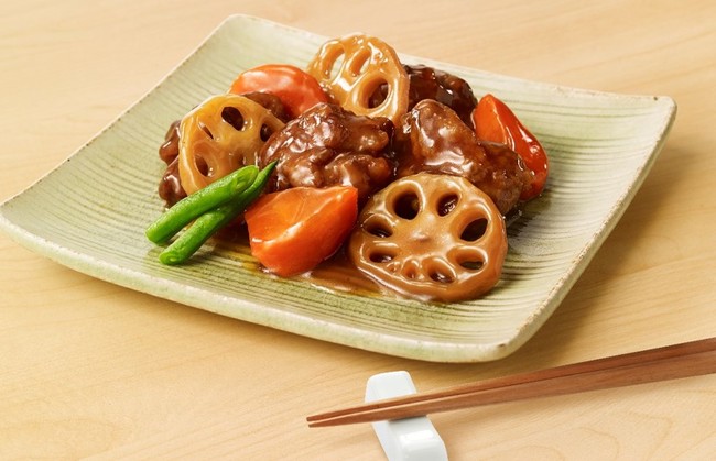 鶏もも肉を使用した食べ応えのある揚げ鶏に、れんこん、にんじん、を加えて自家製の黒酢あんを絡めました。かめ仕込みの有機玄米黒酢と熟成蔵出し黒みりんで深いコクと旨みある味わいに仕上げました。