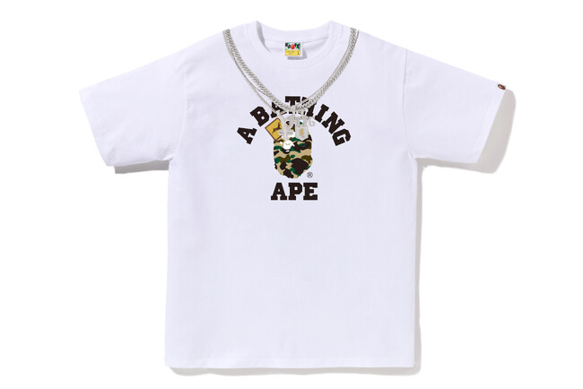 本コラボレーションはBAPE(R)︎の永遠の定番である1st CAMOとカレッジロゴのTシャツをベースに、