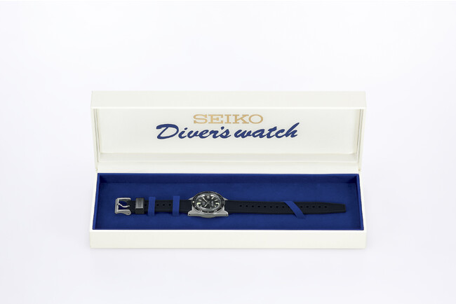 国産初のダイバーズウオッチが誕生した1960年代の雰囲気を纏った、セイコーのダイバーズウオッチ専用ボックスを再現したオリジナルボックス。