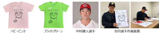 TシャツカラーはJ SPORTS広島好きTwitterアカウント【公式】(@jsports_carp) にて実施したファン投票により決定しました。羽月選手セレクトの「ブライトグリーン、ベビーピンク、ラベンダー、オリーブ」の4色の中から投票を行い、投票数の多かった、ベビーピンク、ブライトグリーンの2色を商品化する運びとなりました。Tシャツの素材は吸水速乾に優れたドライ素材で観戦時や運動時など様々なシーンにてご活用いただけます。