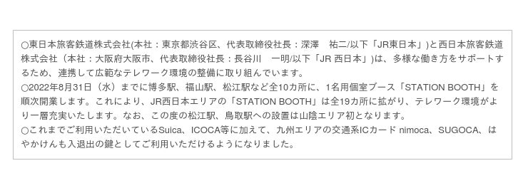 2.JR西日本エリアにおける「STATION BOOTH」について