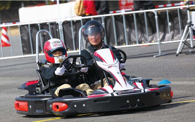 本格カートのドライビングを学ぶ体験コーナー。お子様でもドライバー気分になりきれます。