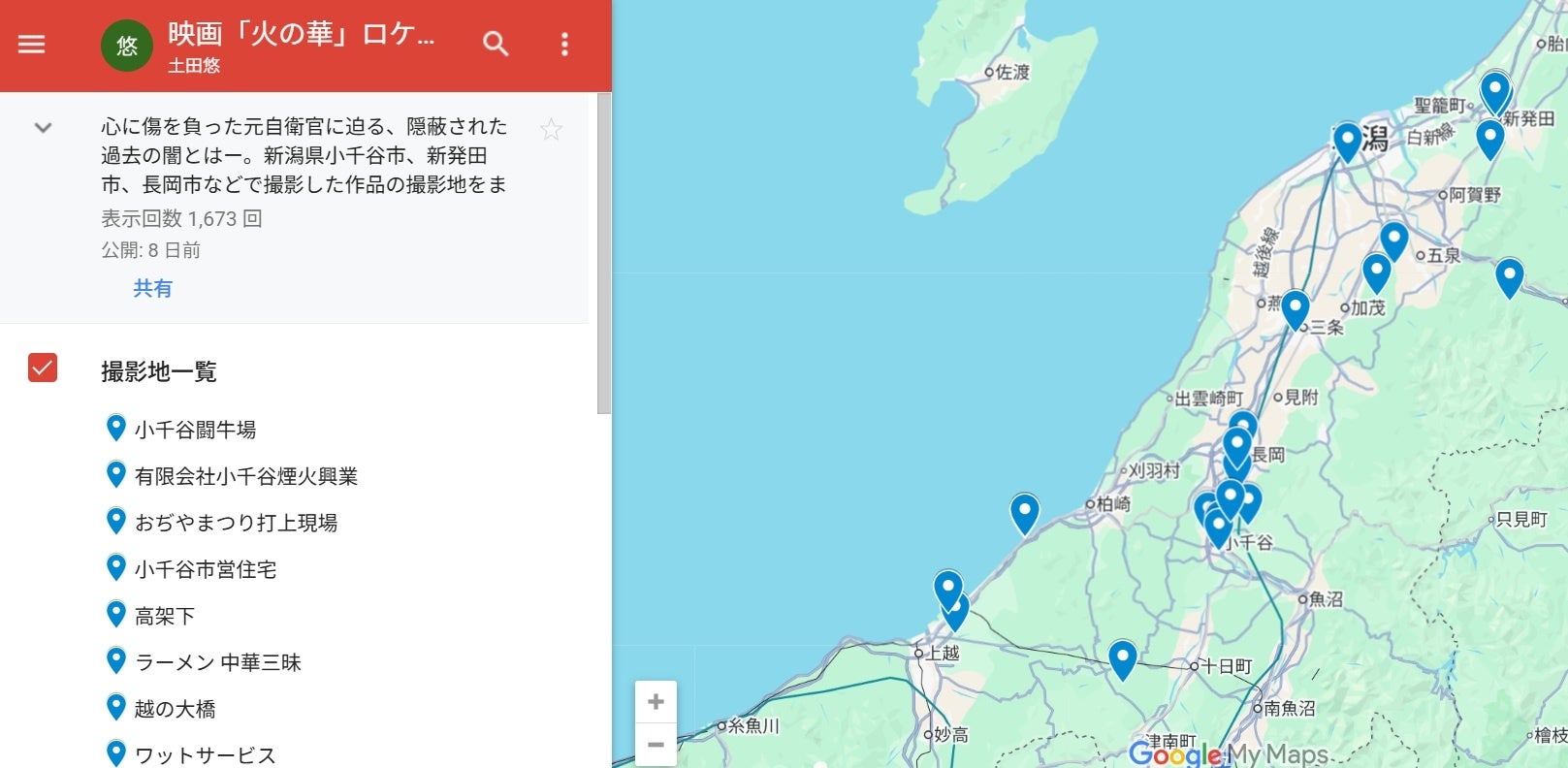 新潟県内各地で撮影された映画『火の華』のロケ地を一望できるデジタルマップが完成