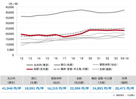 三幸エステート株式会社(本社:東京都中央区、取締役社長:武井重夫)は、2024年10月度の名古屋市オフィス賃貸状況(空室率&現空面積:全規模、募集賃料&募集面積:全規模、規模別空室率、主要エリア※1空室率:全規模)および全国6大都市(東京・札幌・仙台・名古屋・大阪・福岡)の大規模ビルのマーケットデータをまとめた「オフィスマーケット2024年11月号名古屋」を公表します。