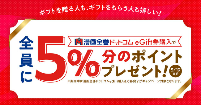 漫画全巻ドットコム eGiftサービスでeGift券をご購入し、応募フォームから応募された方全員にeGift券の5%分のポイントをプレゼント!