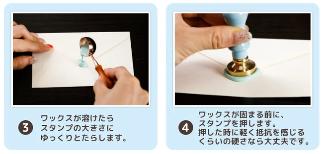 シーリングスタンプの使い方は以下のとおりとなります。