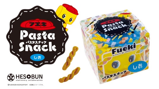 オリジナル商品の企画・制作・販売を軸に、企業・組織のトータルブランディングを手掛ける株式会社ヘソプロダクション(本社:大阪市福島区・代表取締役:稲本ミノル)が展開する「なるへそ」がある文具のコトづくりproduct『へそ文-HESOBUN-』の、大人気フエキのり“ノリでクリエイト”コラボシリーズお菓子に「フエキパスタスナック」が新登場いたします。