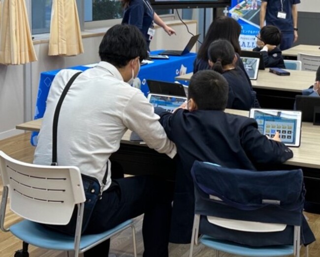 また、生徒が担任の先生に対して「こんなやり方もあるよ!」と別のやり方を教える姿も見られ、子どもたちと先生の垣根を超えて、プログラミング的思考を学ぶ様子も印象的でした。