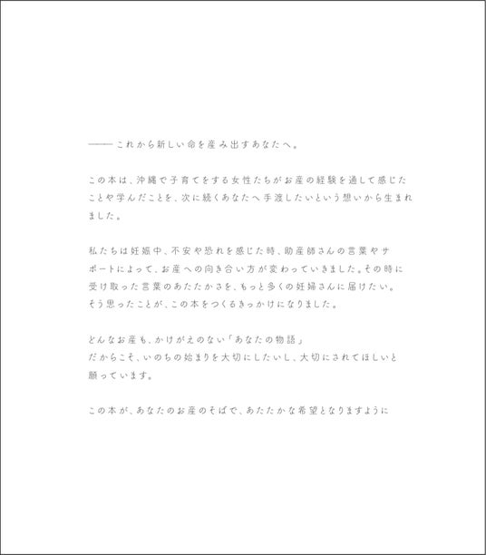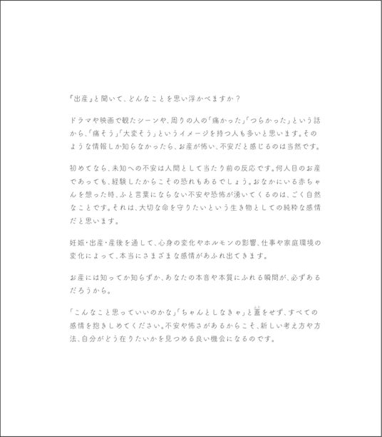 この本が妊婦さんたちの未来に向けた希望となり、少しでも勇気や安心感をもって、出産に臨む手助けとなりますように。