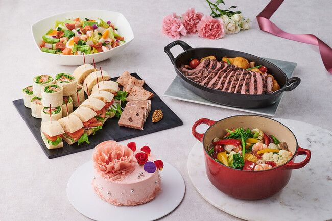 ケーキは単品でもご購入いただけ、ご希望に合わせてカーネーションが入ったフラワーギフトや、フランス共和国農事功労賞シュヴァリエを受勲した総料理長 中宇祢満也監修のおうちde母の日セットもご一緒にお求めいただけます。お母様へ、日ごろの感謝の気持ちを込めたギフトはいかがでしょうか。