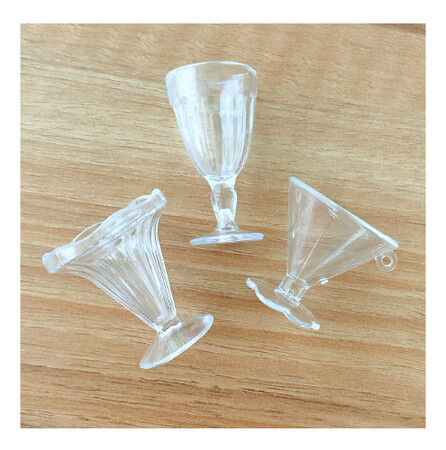 ミニチュアサイズの透明なアクリル製グラスの3種セットです。