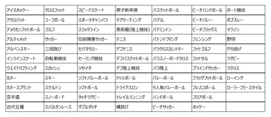 ▲これまで本プログラムでサポートしてきた競技一覧