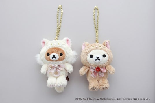 ジプシーとヌネットになりきったリラックマとコリラックマのおでかけぬいぐるみキーホルダーが登場!首元にはクリザンテーム柄のリボンを付けています。おでかけにもいつもときめきと癒しを!