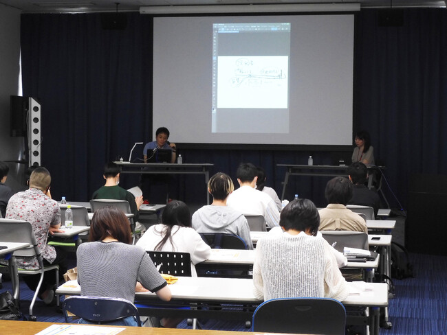まずは、2023年3月に劇場公開されたばかりの『映画ドラえもん のび太と空の理想郷』の予告編の映像を参加者の皆さんと視聴。その後、堂山さんから「非常にたくさんの方に観ていただいた作品です。子どもはもちろん、ドラえもんってすごく幅の広い層の方に観られる作品ですが、今回の映画では脚本のテーマをどうやってドラえもんの映像に落とし込むか考えるのが大変でした」と、制作エピソードについてお話しいただきました。