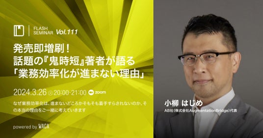 2024/3/26(火)20:00~21:00【Flashセミナー】Vol.111 発売即増刷!話題の『鬼時短』著者が語る「業務効率化が進まない理由」