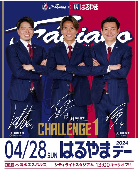 このたび、2024年度もファジアーノ岡山の選手へオフィシャルスーツを提供し、2024年4月28日(日)にシティライトスタジアムにて開催される清水エスパルス戦にて選手着用のオフィシャルスーツと同デザインのスーツをご購入いただける『はるやまデー~ファジアーノ岡山 公式オーダースーツ即売会~』を実施いたします。