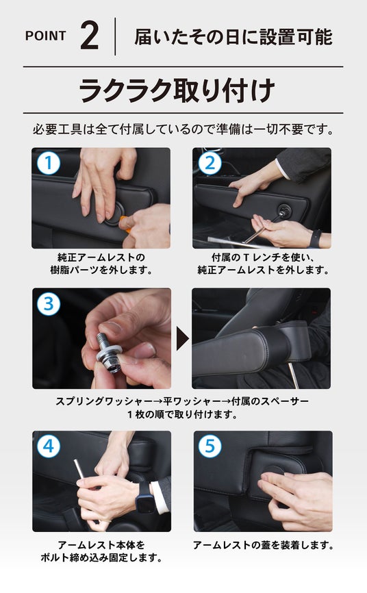 アームレストがワイドになることにより、ドライブポジションを好きな位置に調が可能です。