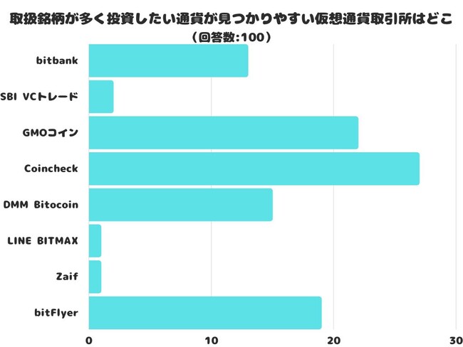 取扱銘柄が多く投資したい通貨が見つかりやすい仮想通貨取引所をアンケートにて調査したところ、1位は「Coincheck」でした。