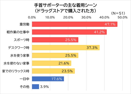 ※ドラッグストアで手首サポーターを購入したことがある男女51名への自社アンケート(マルチアンサー)
