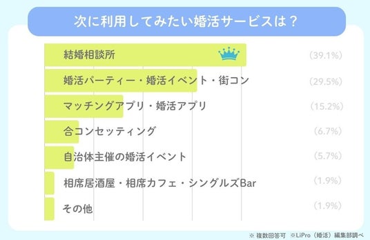 - 次に利用してみたい婚活サービスで最も支持を集めたのは「結婚相談所」