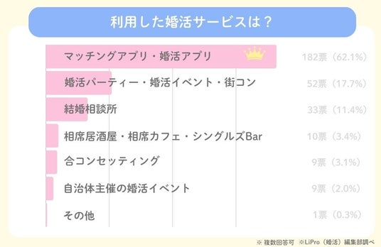 (利用した婚活サービス:マッチングアプリ・婚活パーティー・街コン)