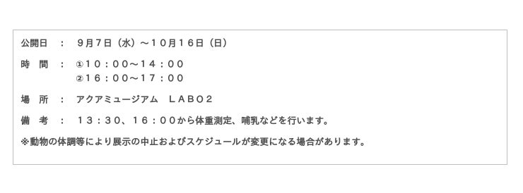 この小さな命を通して、水族館としての種の保存に対する取り組みである人工哺育の様子をご紹介いたします。