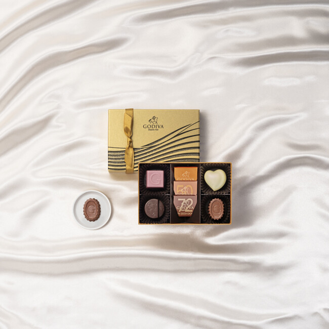 また1948年にゴディバ1号店がブリュッセルに誕生した記念に作られた、ハートの形のチョコレート「クール」や、1968年にベルギー王室御用達ブランドとして認定されたことを記念して誕生した、ベルギーの象徴であるライオンが刻印されたチョコレートなど歴史を感じられるチョコレートなどを詰め合わせ、ゴディバの精神、伝統、そして革新を一つの箱で表現しました。