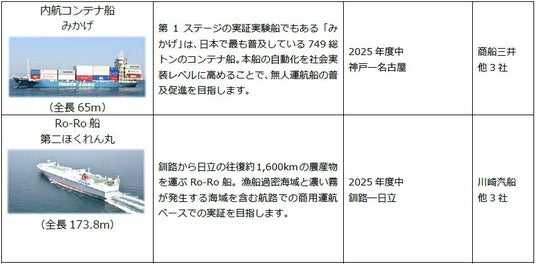 いずれの船舶も高度な自動運航システムに加え、第1フェーズで課題となった船舶交通量の多い海域での航行や自動離着桟、複数船舶に対する陸上からの監視・支援等の技術を向上し、社会実装の実現を目指します。