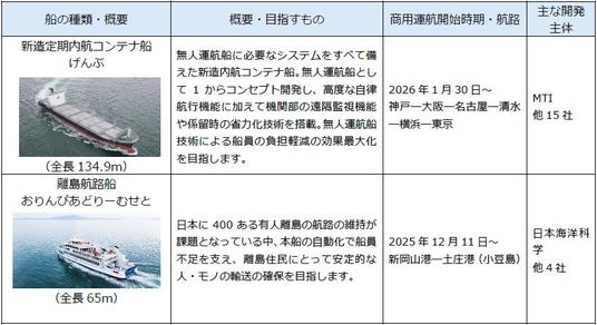プロジェクトに参画する実証船4隻のうち、自動運航船として唯一新造された定期内航コンテナ船「げんぶ」の自動運航実証実験が完了し、日本海事協会による自動運航船に関する認証を1月26日付で取得し、自動運航船として国土交通省の船舶検査に1月28日付で合格しました。これを受け、本日2026年1月30日から定期航路において、自動運転レベル4相当での一般貨物を搭載した“商用運航”を世界で初めて開始いたします。今回の商用運航を皮切りに、無人運航船の社会実装が拡大することで、船員の負担軽減や働き方改革、物流の安定化、ひいては日本の造船・海事産業の競争力強化が期待されます。