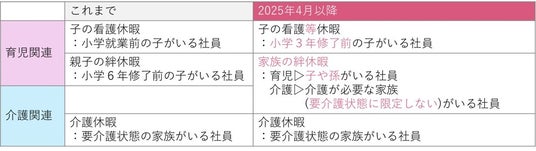 2025年4月から、育児・介護休業法が改正されます。「子の看護休暇」は「子の看護等休暇」に名称変更し、対象が小学校3年生修了までに引き上げられ、感染症に伴う学級閉鎖や、入園・入学式、卒園式でも取得できるようになります。