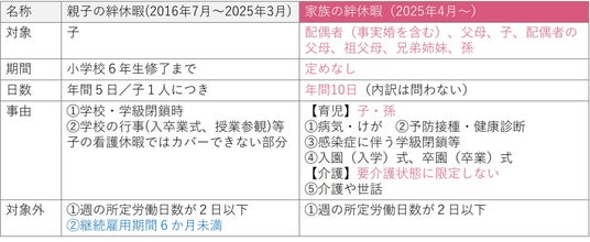 独自制度 親子の絆休暇の廃止と家族の絆休暇の新設