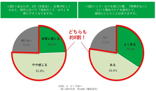 3月(年度末)は例月よりも約8割が「身体のこり・はり」を実感。ケアを諦めたり後回しの人も約8割!