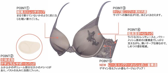 背部がレース+パワーメッシュになって美しさもフィット感もさらにバージョンアップ!