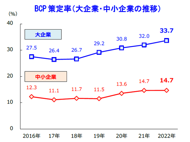 BCPを策定している企業は17.7%。大企業が上昇も、中小企業は横ばい