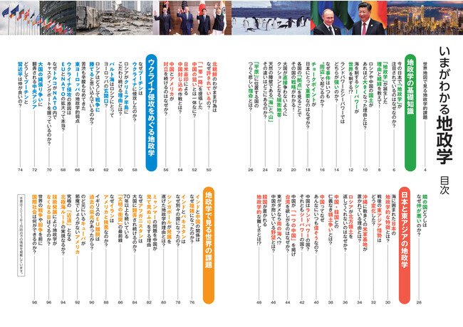 近年話題の「地政学」の基本から、地政学的に見た日本、そしてロシアのウクライナ侵攻や米中対立などの世界の課題を、47の疑問に答えるかたちでやさしく解説。