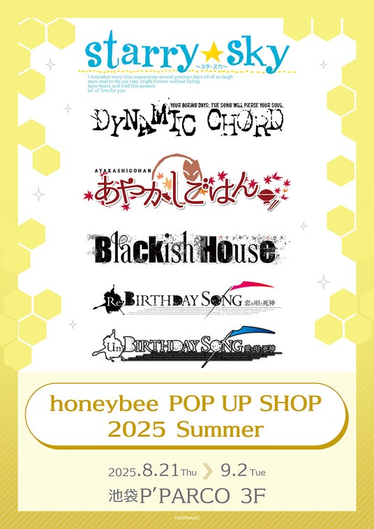 株式会社コンテンツシード(本社:東京都品川区、代表取締役:大塚 則和)は、2025年8月21日(木)より池袋P´PARCO 3Fにてhoneybee POP UP SHOPを開催いたします。