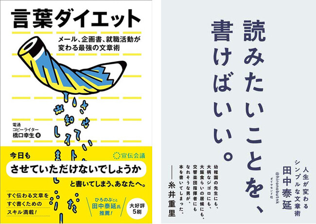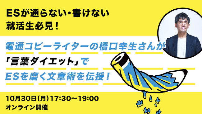 書籍『言葉ダイエット メール、企画書、就職活動が変わる最強の文章術』の5刷を記念して、10月3日(火)に東京・下北沢の本屋B&Bでトークイベントが開催されます。『言葉ダイエット』著者の橋口幸生氏と、『読みたいことを、書けばいい。』著者の田中泰延氏の2人が「健康に良い言葉、悪い言葉とは?」をテーマに話します。10月30日(月)にはマスナビ主催の就活生向けセミナーも開催します。