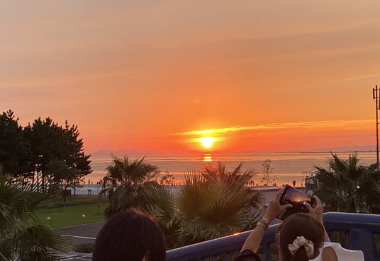 夕陽100選にも選ばれた大阪湾に沈む夕日